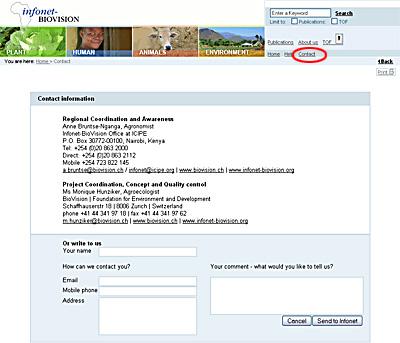 For writing a general feedback or question about Infonet-BioVision click to 'Contact' in the top navigation, fill in the form and send it by clicking on 'Send to Infonet'.