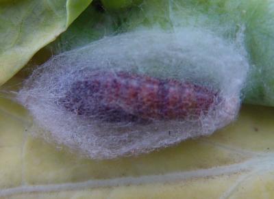 | Pupa of the cabbage looper. During its last larval stage the caterpillar spins a cocoon. |