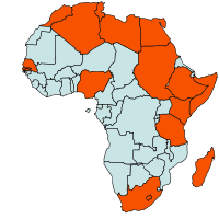 | Geographical Distribution of the Cabbage looper in Africa (red marked) |