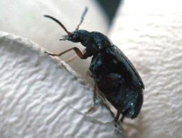 The adults are oval beetles, 2 to 3 mm long, dark brown in colour often with blurry reddish markings. The larvae are very hairy. They are common in hot dry areas. Damage is done only by larvae feeding on cereal grains and products, groundnuts, oilseed cakes, nuts, pulses, etc. Dried fruit beetles(Carpophilus spp.)