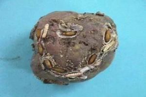 | Potato tubers damaged by the potato tuber moth. |