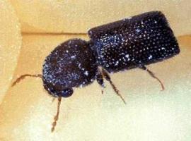 | Larger grain borer (Prostephanus truncatus). The adult beetle is 3 to 4.5 mm long. |