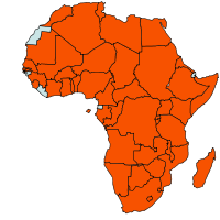 | Geographical Distribution of the African bollworm in Africa (red marked) |