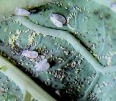The tobacco whitefly (Bemisia tabaci) and the greenhouse whitefly (Trialeurodes vaporariorum) attack a very wide range of wild and cultivated plants. Bemisia tabaci is the dominating whitefly in the region. Its host range includes cotton, tobacco, vegetables (tomatoes, eggplant, okra, bell peppers, cucurbits, etc.), legumes (beans, soybeans, cowpeas and groundnut), tuber and root crops (sweet potato, cassava, potato) among others. The host range of Trialeurodes vaporariourm is similar to the one for Bemisia tabaci, but the former usually occurs at higher altitudes and cooler climates than B.tabaci. Trialeurodes vaporariorum attacks many plants grown under protected conditions (greenhouses) in temperate countries, the most severely affected crops are aubergine, cucumber, beans, sweet peppers, tomatoes and a large number of ornamentals. The status of this whitefly in field grown crops in the region is not clear. The cabbage whitefly (Aleyrodes proletella) is a pest of Brassicas but rarely reaches levels that require intervention.