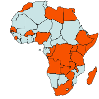| Geographical Distribution of Bacterial wilt in Africa (red marked) |