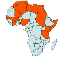 | Geographical Distribution of Tomato Yellow Leaf Curl Virus Disease in Africa (red marked) |