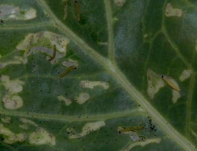| Diamondback moth - Young caterpillars and their damage |