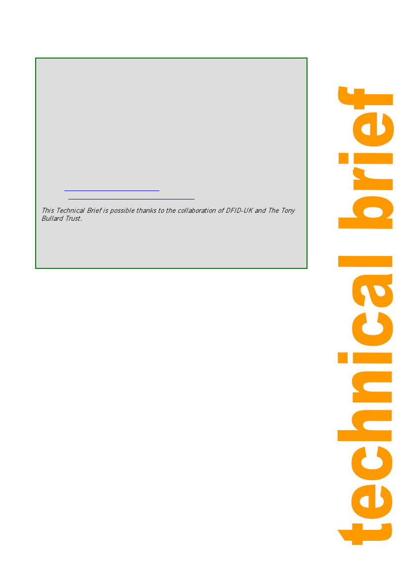 This Technical Brief is possible thanks to the collaboration of DFID-UK and The Tony