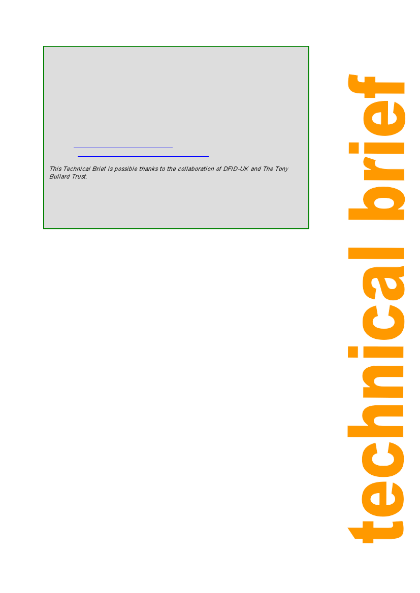This Technical Brief is possible thanks to the collaboration of DFID-UK and The Tony