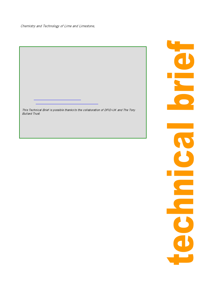 This Technical Brief is possible thanks to the collaboration of DFID-UK and The Tony