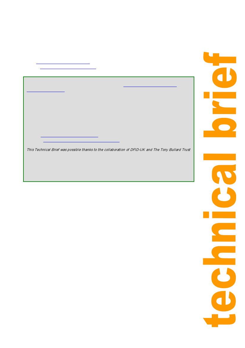 This Technical Brief was possible thanks to the collaboration of DFID-UK and The Tony Bullard Trust