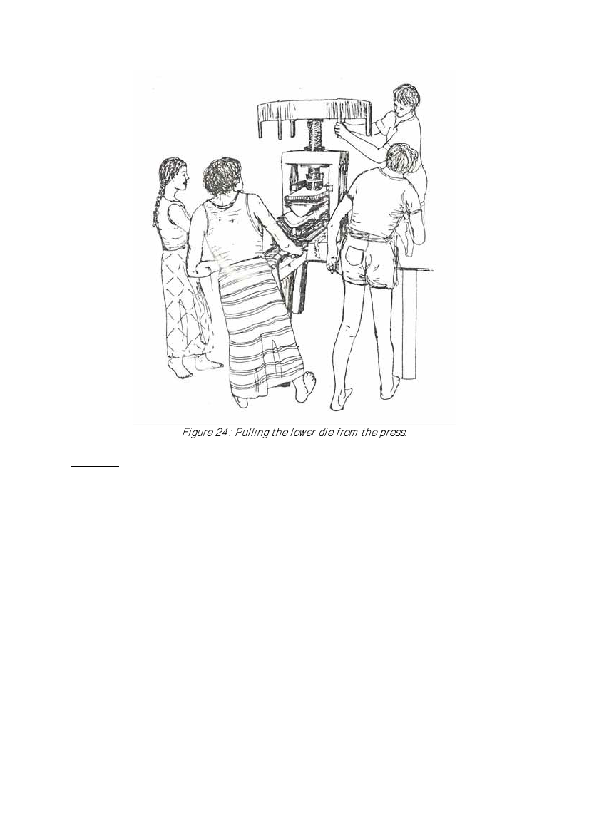 Figure 24: Pulling the lower die from the press.