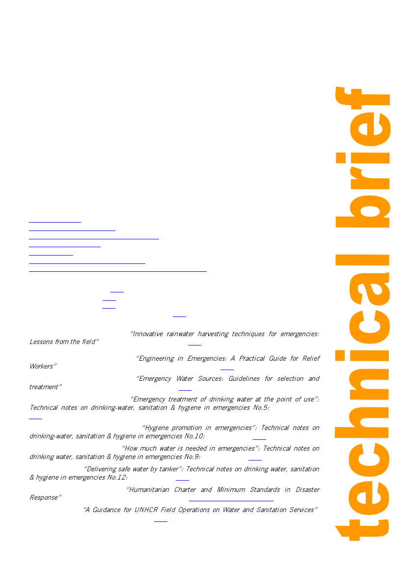 House, S. & Reed, B. (2004) “Emergency Water Sources: Guidelines for selection and