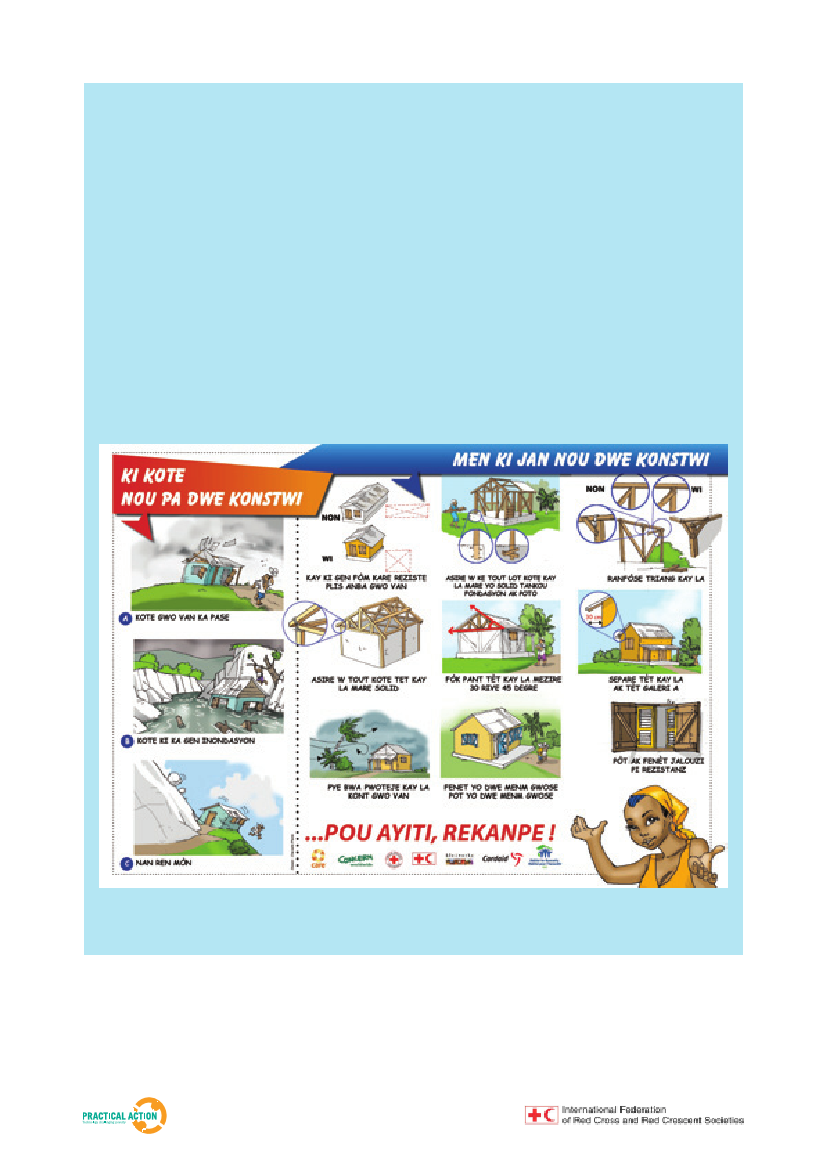 - Poster and leaflet campaigns, based on the drawings from Fred Cuny on housing typologies in Haiti and