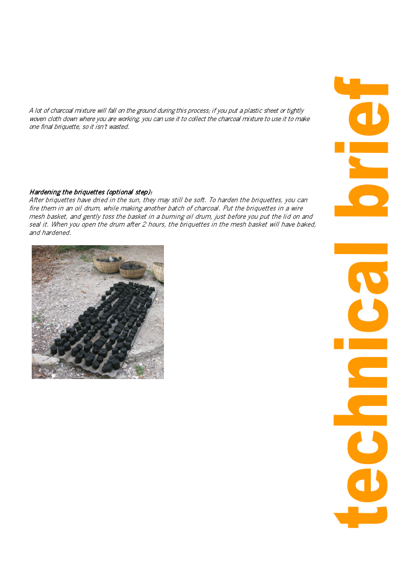 After briquettes have dried in the sun, they may still be soft. To harden the briquettes, you can