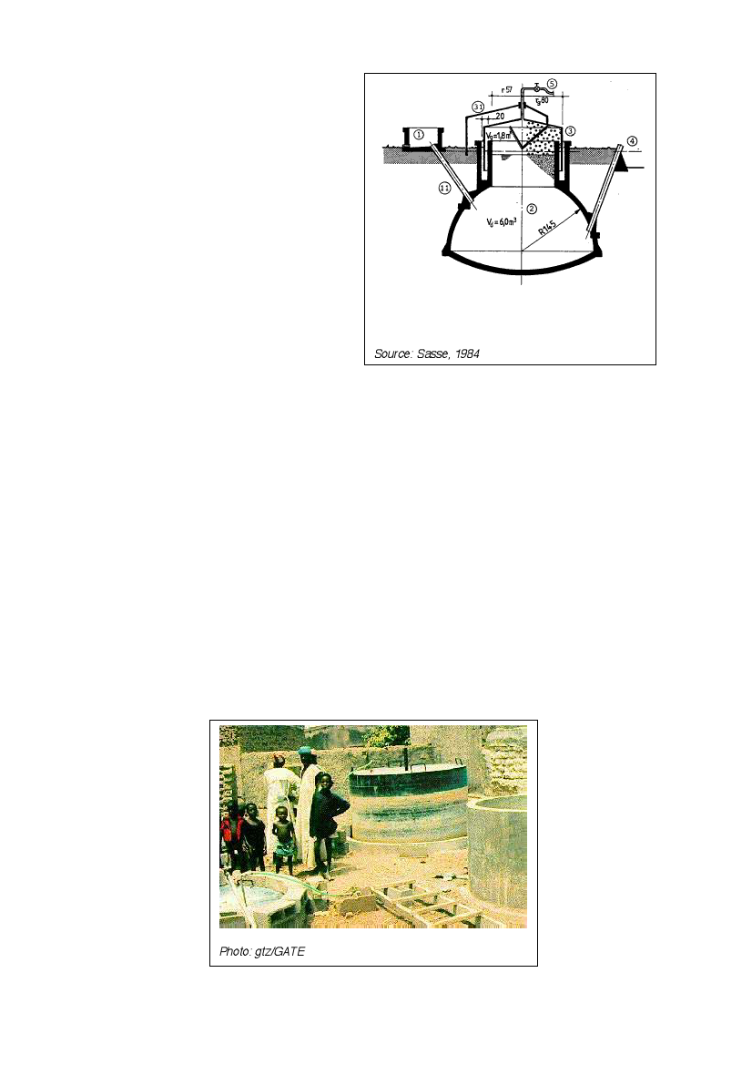 digester temperature is increased by solar radiation. Gas drums made of 2 cm wire-mesh-