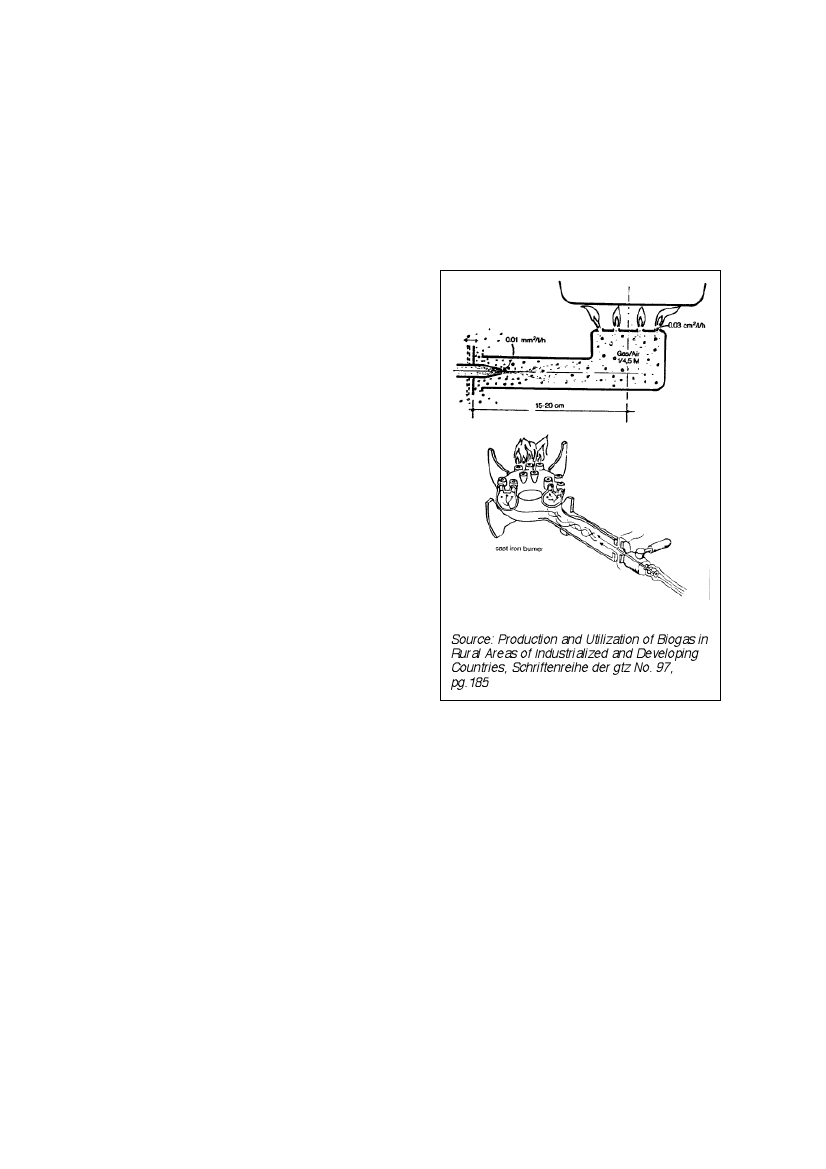lamps. A biogas lamp is only half as efficient as a kerosene lamp. The most efficient way of