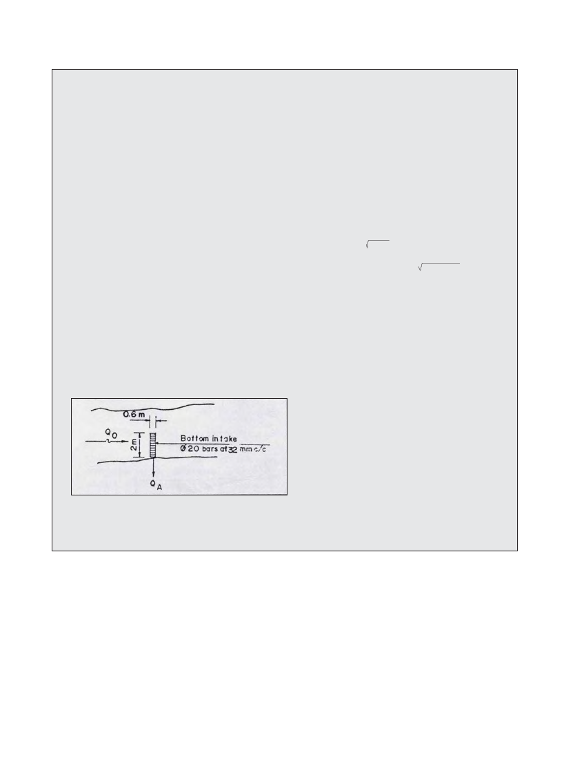 A suitable site has been located for a bottom intake. The river width at this area is 5 m and the depth is 0.5 m (i.e. ho = 0.5 m).
