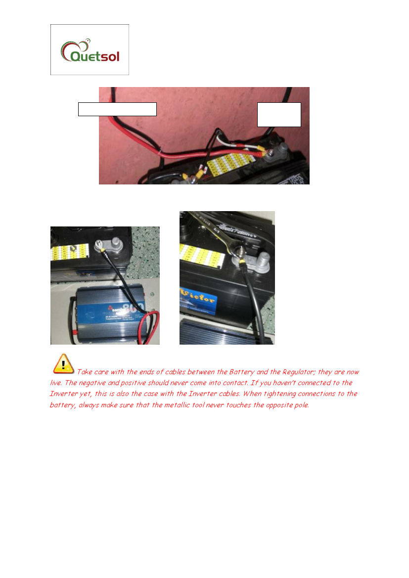 Take care with the ends of cables between the Battery and the Regulator; they are now