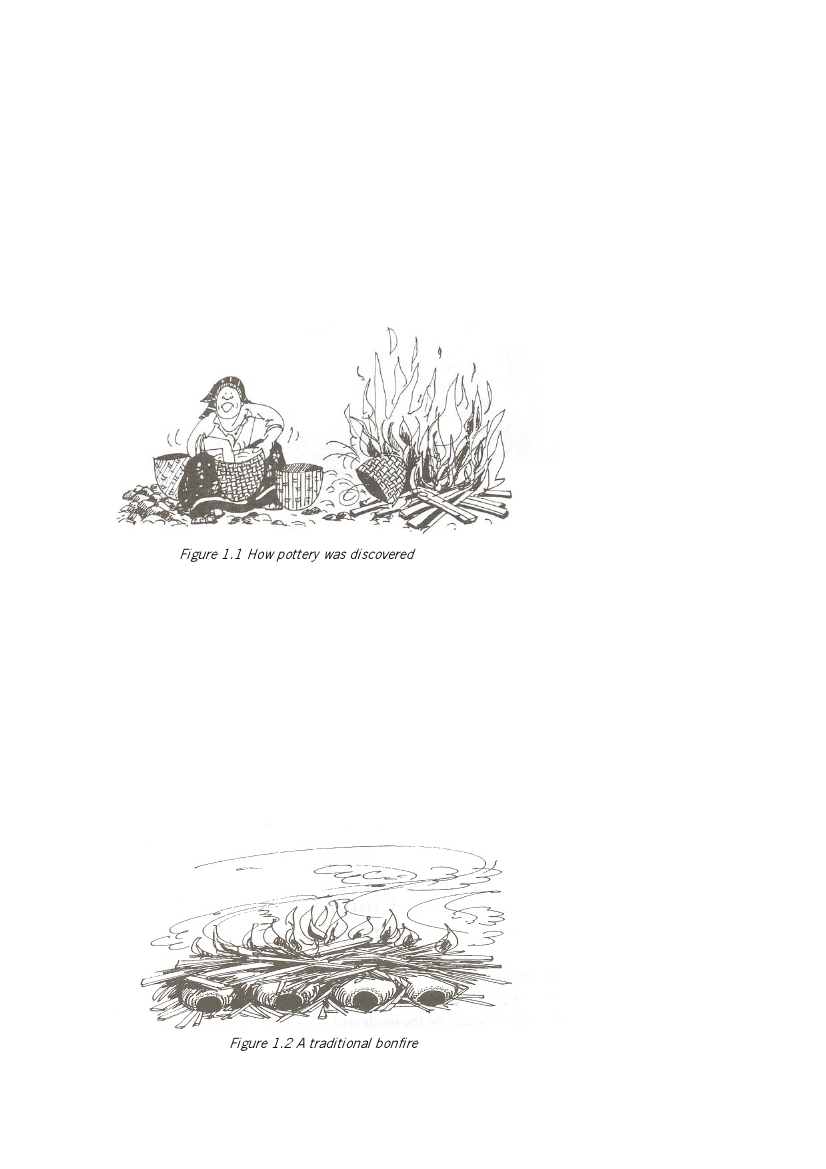 the inside with mud from a nearby river bank, accidentally rolled into the fire. The basket burned away leaving