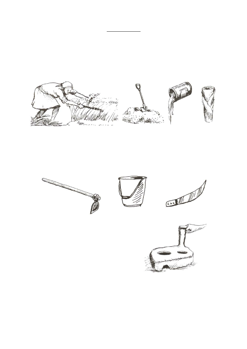 Sand, clay, water, grass and a banana stem (or any cylindrical-shaped item can be used).