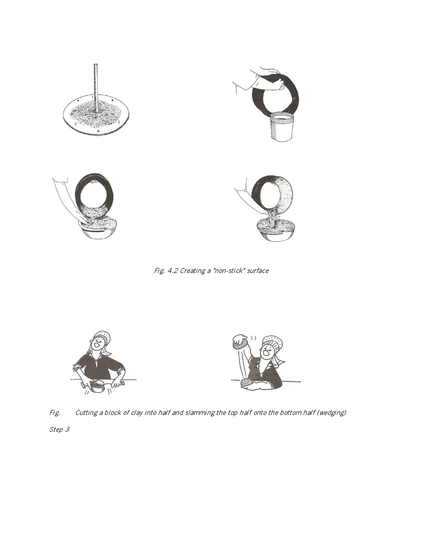 Fig. 4.3 Cutting a block of clay into half and slamming the top half onto the bottom half (wedging)