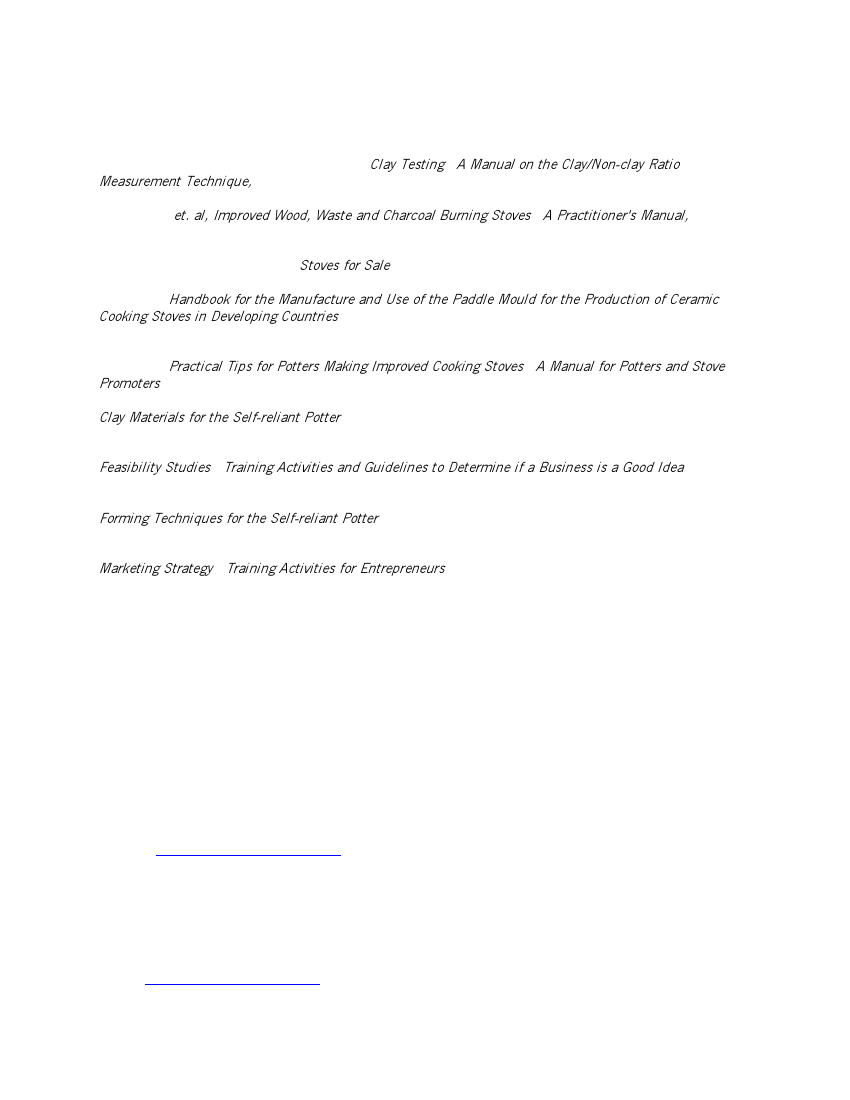 Clay Materials for the Self-reliant Potter (available from GA TE-GTZ, PO Box 5180, D6236 Eschborn,