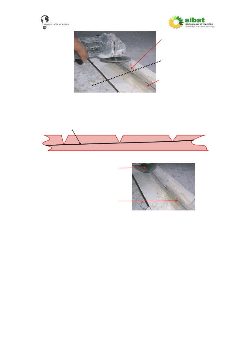 cutting (using tin snips) or grinding along the line. We used a mixture of
