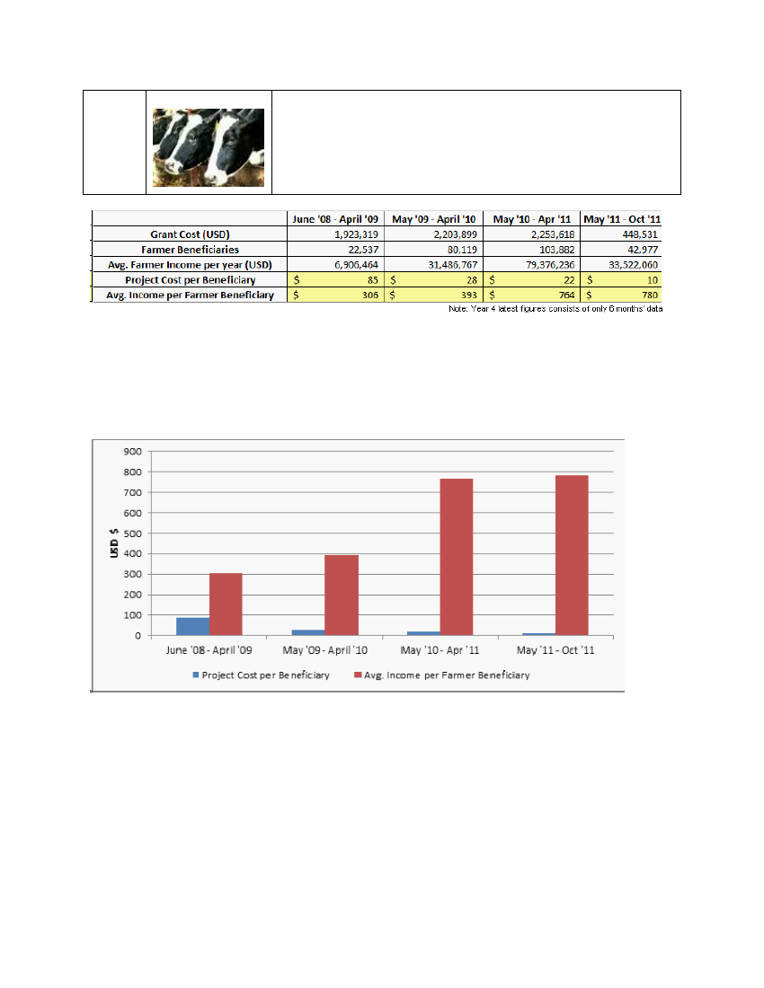 per dairy farmer in the program increased by approximately 155% from USD 306 per year per