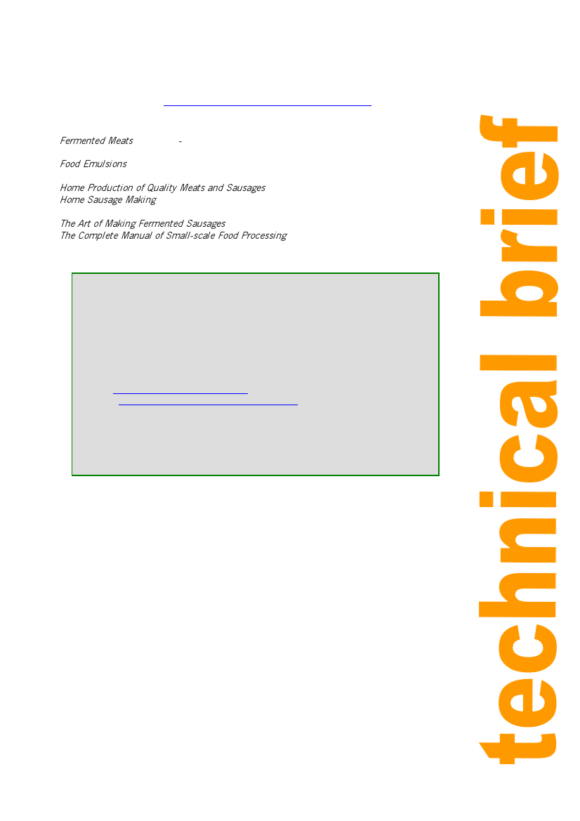 • Home Sausage Making, Lawrie’s Meat Science, 7th Edn., Lawrie, R. A. and Ledward, D.,