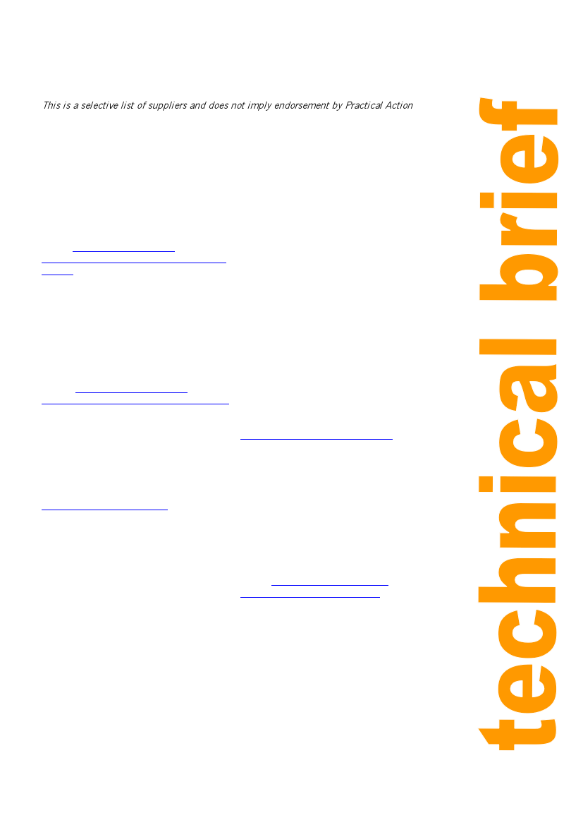 This is a selective list of suppliers and does not imply endorsement by Practical Action