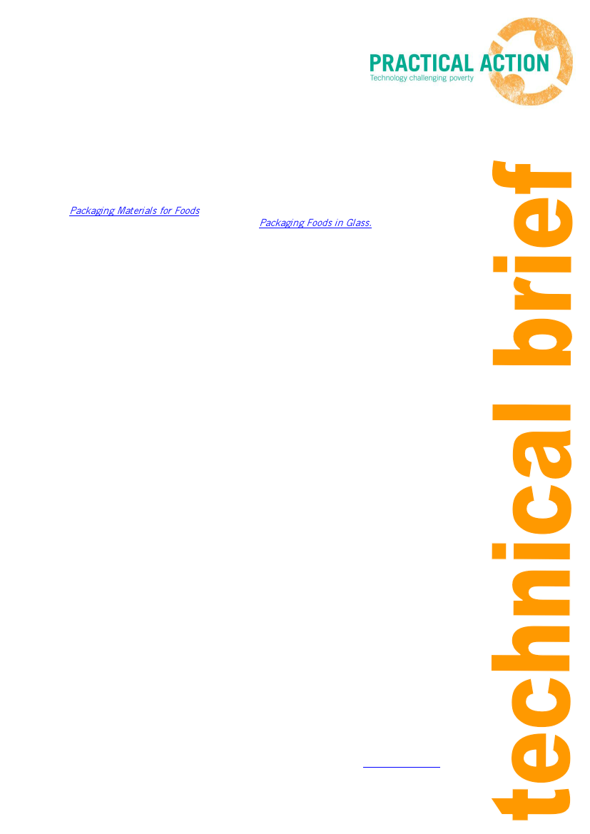 glass containers are described in Technical Brief: Packaging Foods in Glass.