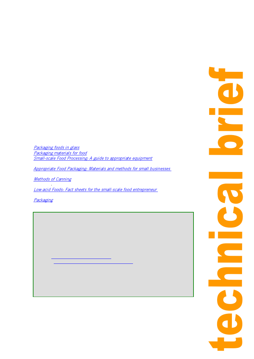 Packaging materials for food Technical Brief, Practical Action