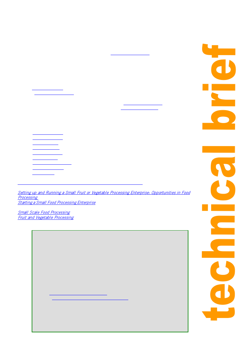 Setting up and Running a Small Fruit or Vegetable Processing Enterprise: Opportunities in Food