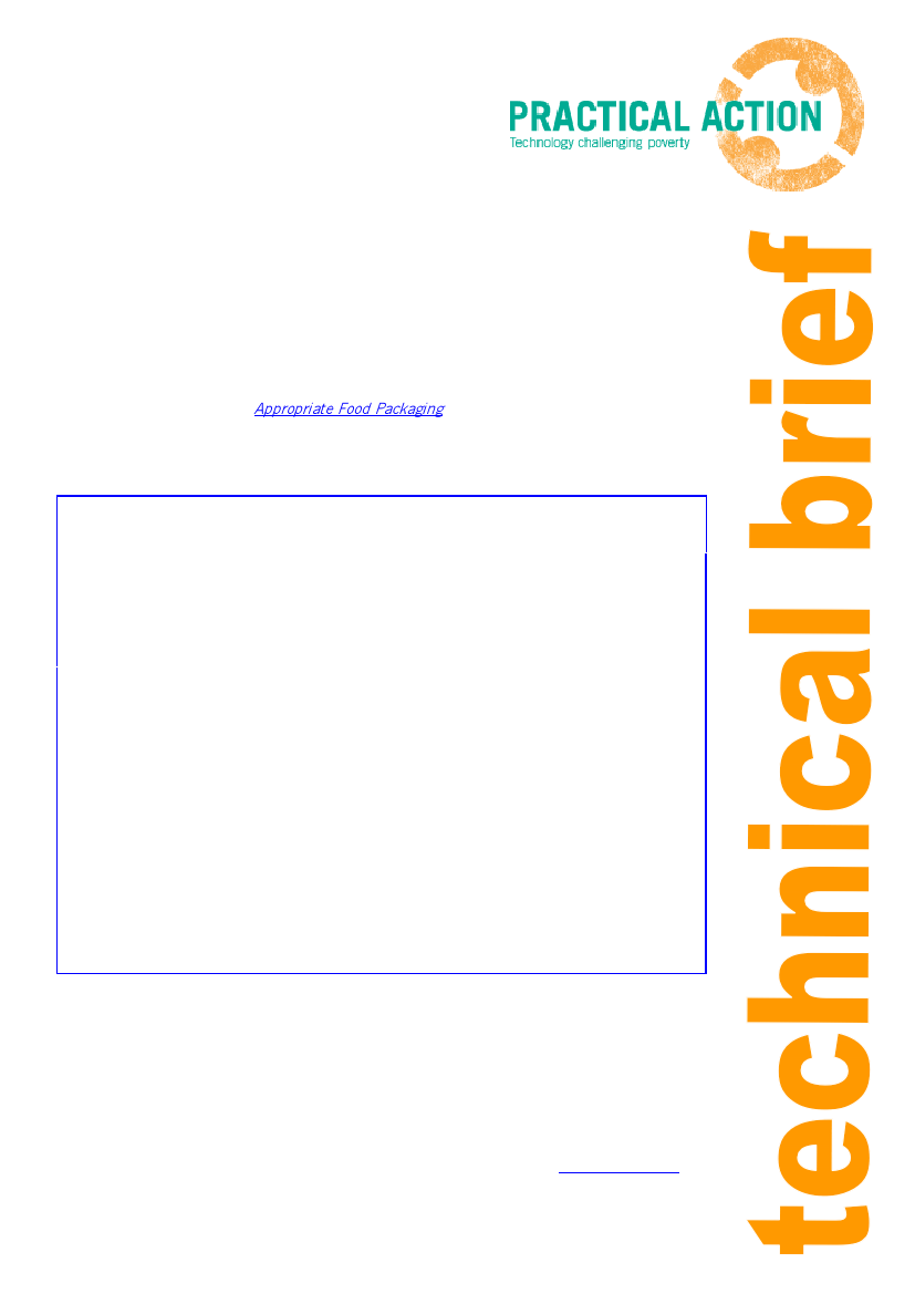 reader is advised to consult Appropriate Food Packaging by P J Fellows and B L Axtell, ILO,