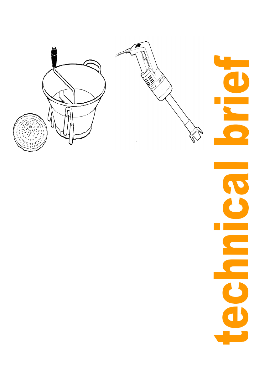 Figure 1: Hand food mill and wand type 50litre high-speed electric blender (not to same scale)