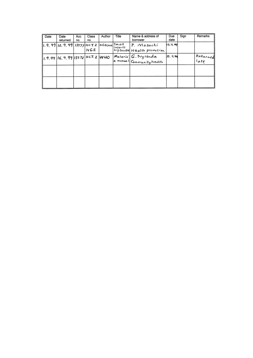 marked out for the borrower’s name and date to be returned