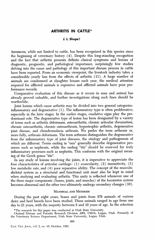 ARTHRITIS, while not limited to cattle, has been recognized in this species since