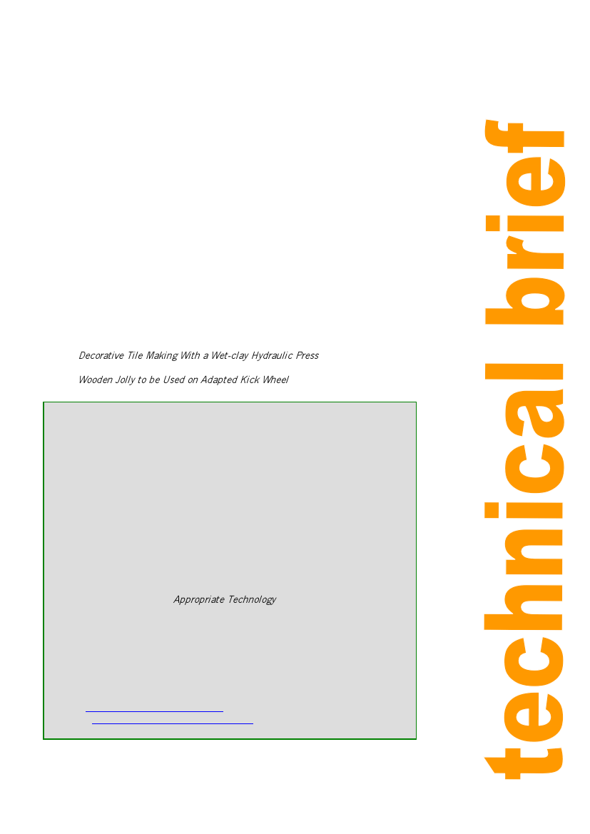 Decorative Tile Making With a Wet-clay Hydraulic Press Appropriate Technology Vol. 17