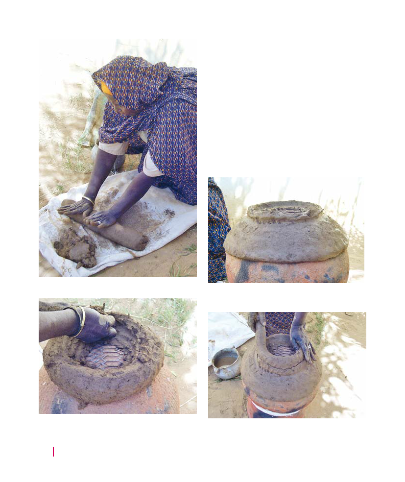 Pic 62. The lady rolls the clay mixture into a sausage shape.
