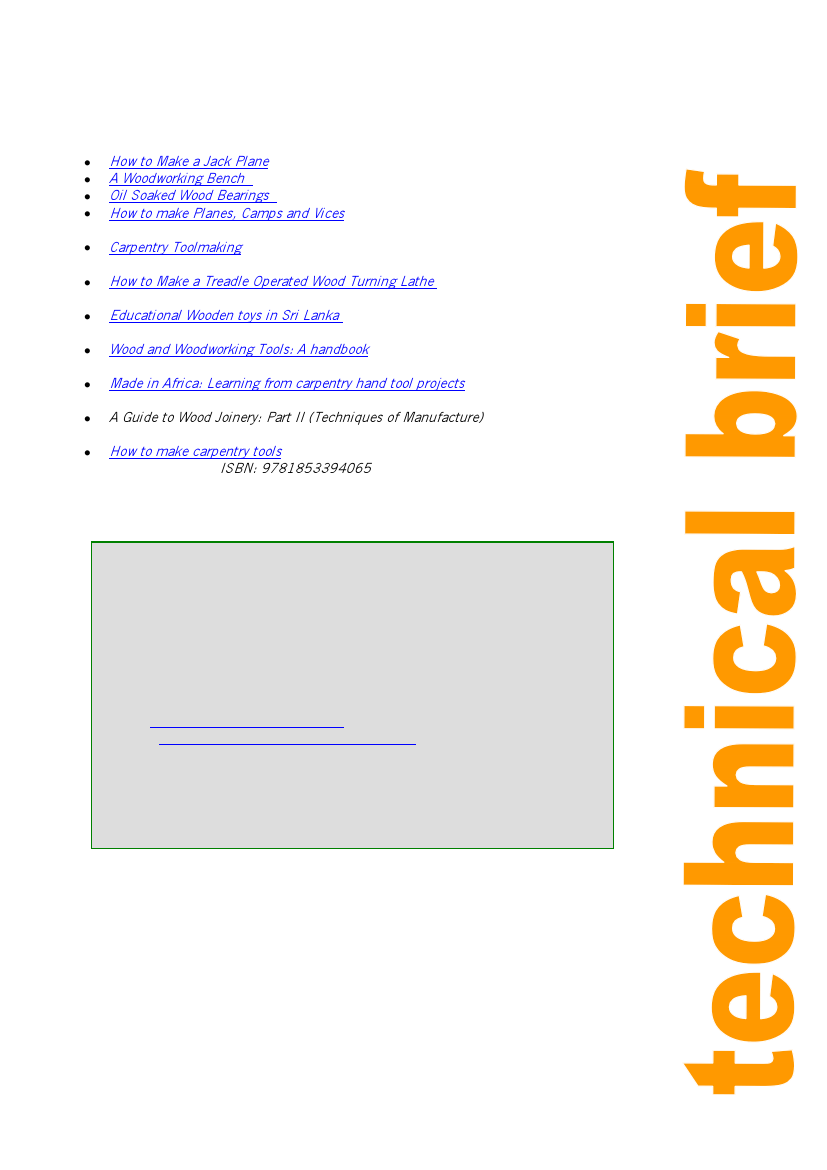 Carpentry Toolmaking, Moore A, Practical Action Publishing, 1993 ISBN: