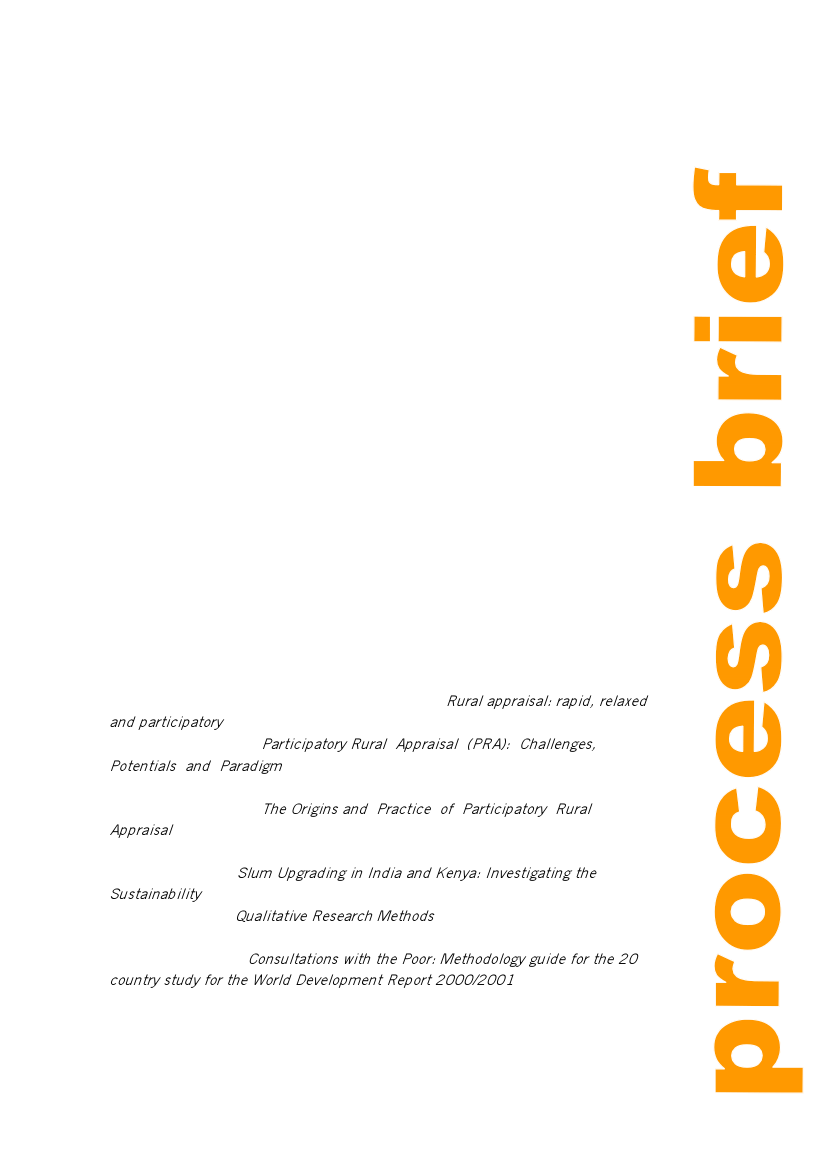 • Chambers, R. (1992). IDS Discussion paper 311. Rural appraisal: rapid, relaxed
