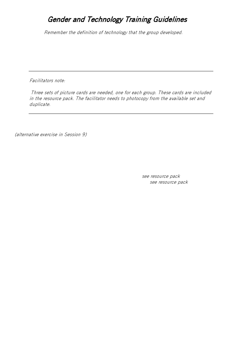 in the resource pack. The facilitator needs to photocopy from the available set and