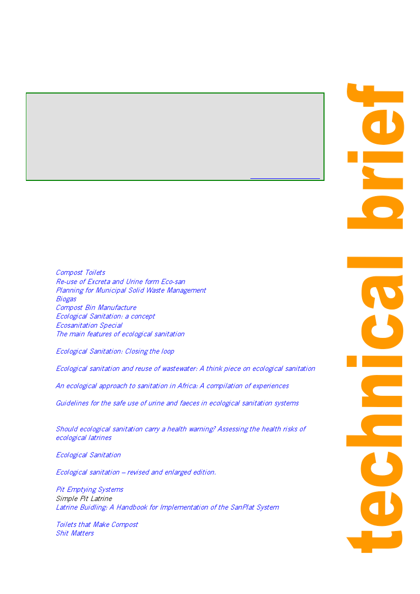 Ecological Sanitation: a concept Technical Brief, Practical Action