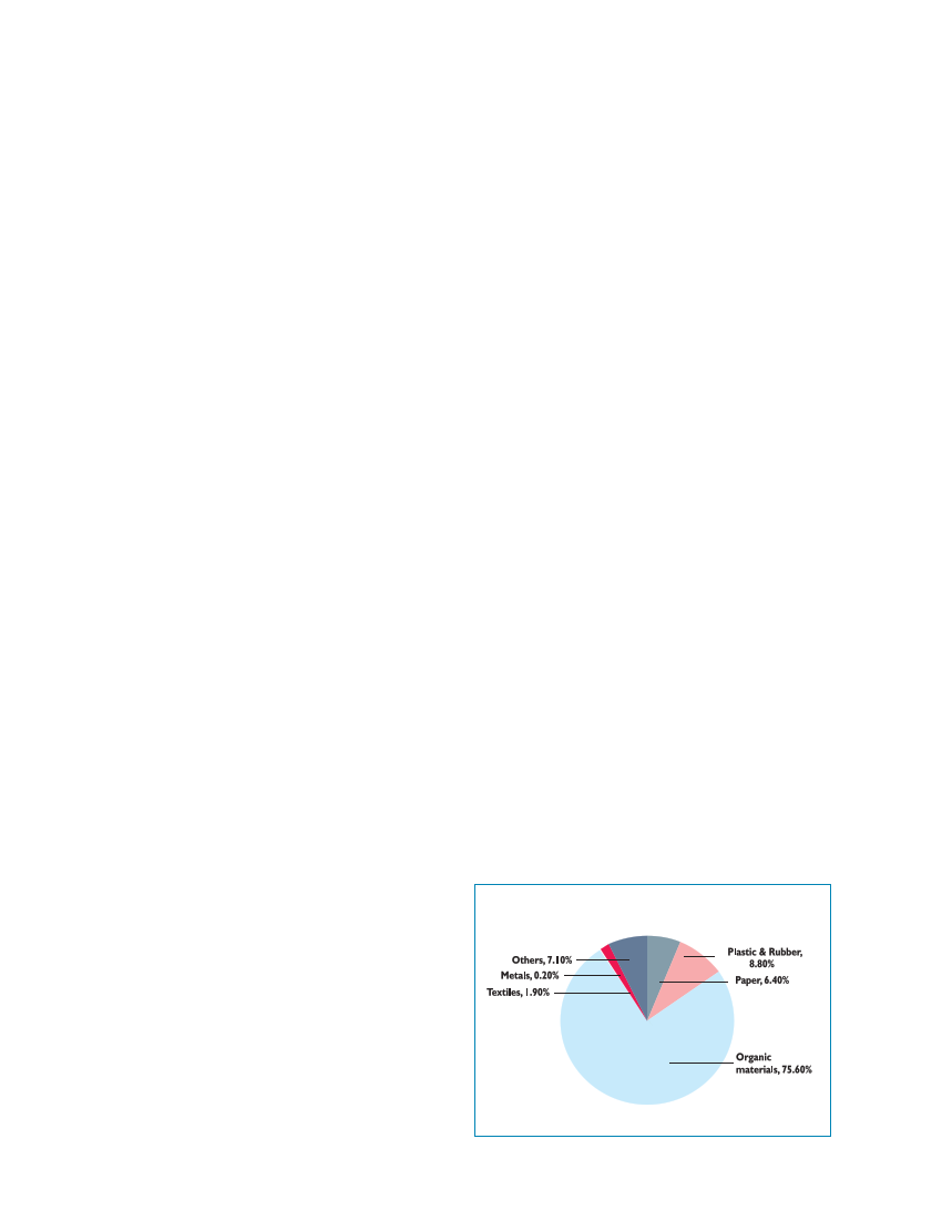 8.8 per cent, organic materials 75.6 per cent, metal 0.2