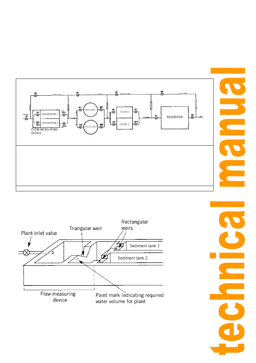 weir reaches the paint mark, which indicates the plant’s operating flow. The rectangular